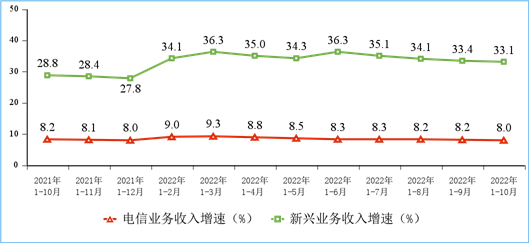 1—10月份,信息通信行业运行平稳。电信业务收入保持稳步增长,电信业务总量较快增长;“物超人”步伐持续加大,5G、千兆光网等新型基础设施建设稳步推进;云计算等新兴业务快速增长,行业发展新动能不断释放。