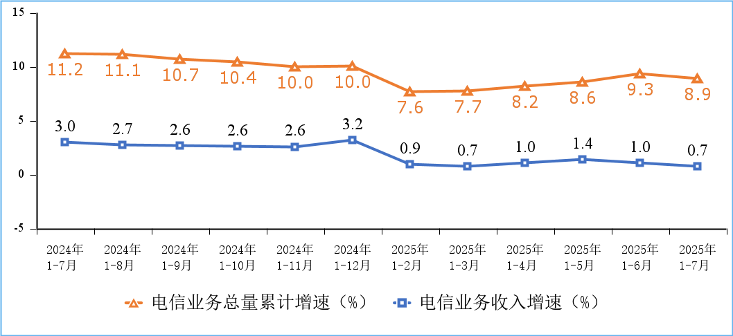 电信业务收入和总量保持平稳增长。前7个月,电信业务收入累计完成10431亿元,同比增长0.7%。按照上年不变价计算的电信业务总量同比增长8.9%。