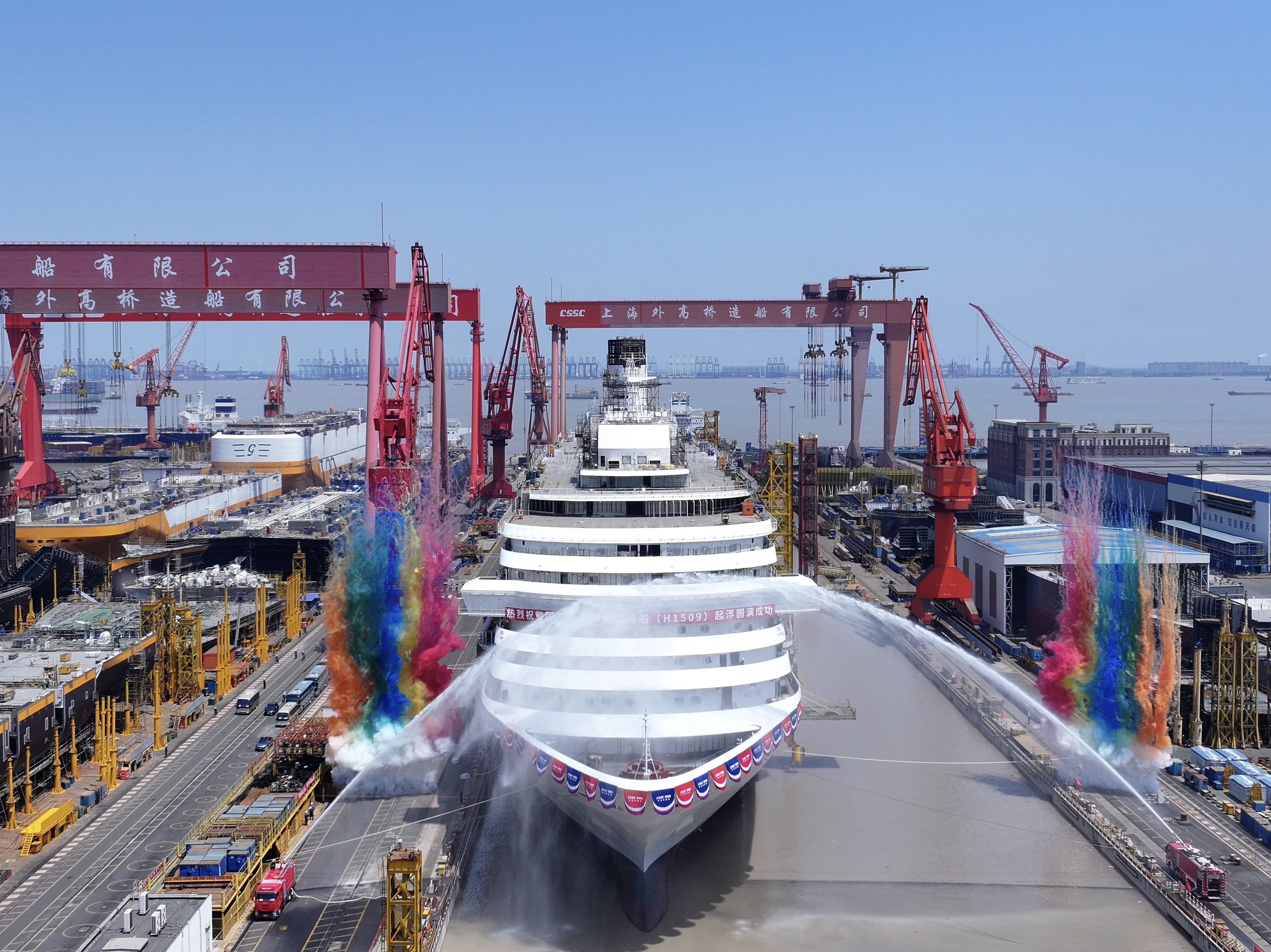 第二艘国产大型邮轮“爱达·花城号”顺利起浮