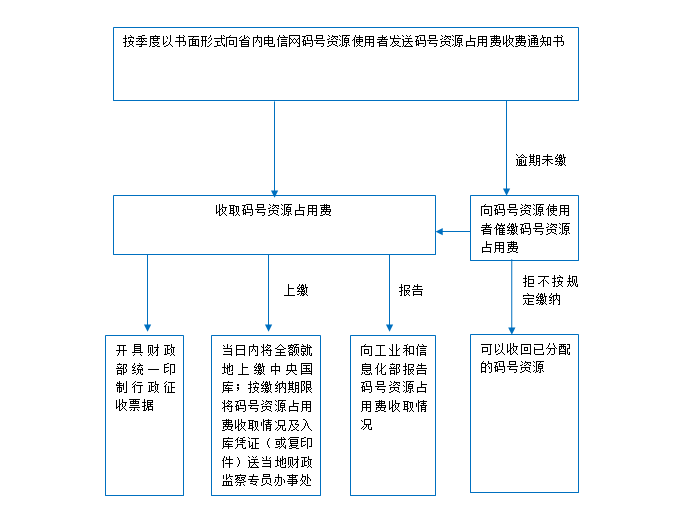 3.《电信网码号资源占用费征收管理暂行办法》(信部联清〔2004〕517号 )第九条:“码号资源占用费由国务院信息产业主管部门和省、自治区、直辖市电信管理机构按照码号资源分配管理权限收取。 国务院信息产业主管部门和省、自治区、直辖市电信管理机构可以委托其他单位收取码号资源占用费。 电信业务经营者分配给专用电信网占用的码号资源,由电信业务经营者按照规定的收费标准向专用电信网收取。”