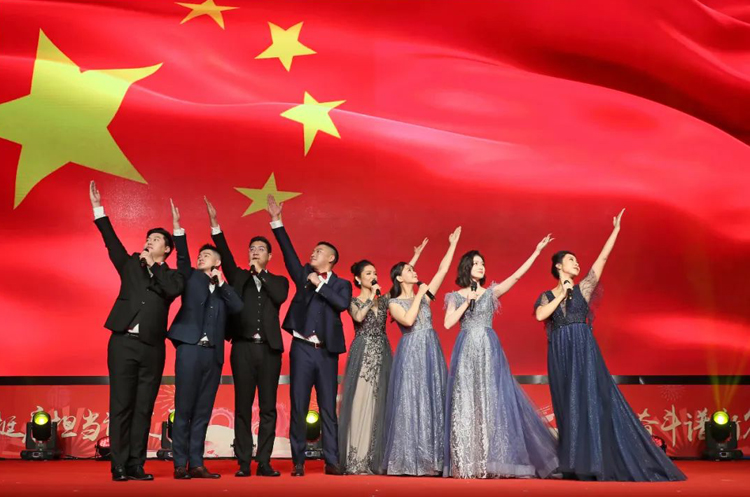 团拜会现场张灯结彩,洋溢着喜庆祥和的节日气氛,广大干部职工自编自导自演的歌舞、语言、曲艺节目精彩纷呈。
