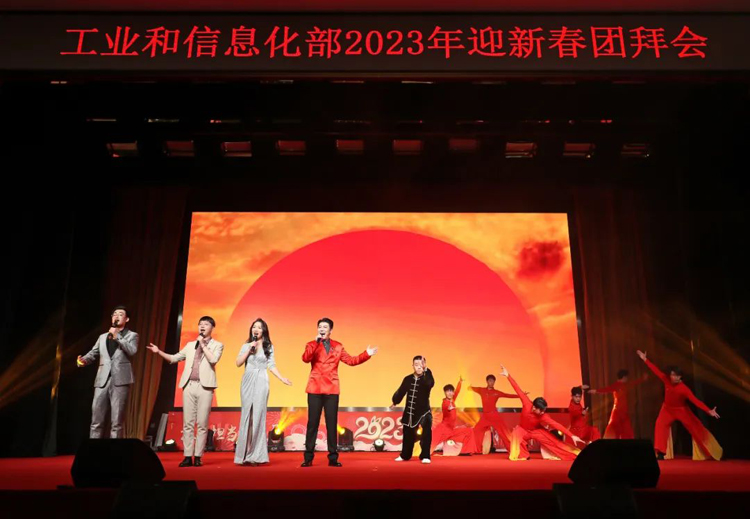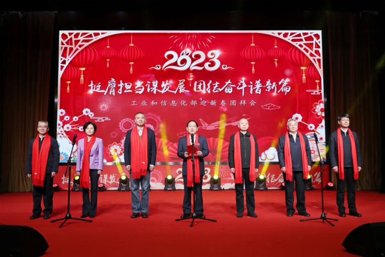 2023年1月18日,工业和信息化部在部机关西单办公区举行2023年迎新春团拜会。部党组书记、部长金壮龙出席活动并致新春贺词,部领导王江平、辛国斌、叶民、徐晓兰、张云明、田玉龙向部系统各单位干部职工拜年。北京航空航天大学党委书记赵长禄、北京理工大学党委书记张军,部老领导苗圩、陈求发、郭开朗出席团拜会。