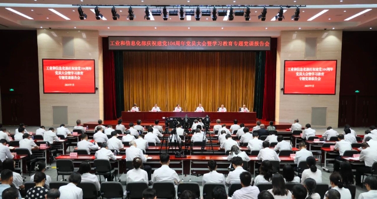 2025年7月4日,工业和信息化部召开庆祝中国共产党成立104周年党员大会暨学习教育专题党课报告会。中央第四指导组组长车俊、副组长郝平和指导组相关同志到会指导,部党组书记、部长李乐成作专题党课报告,部党组成员、副部长,直属机关党委书记张云明主持会议,部党组成员、中央纪委国家监委驻工业和信息化部纪检监察组组长叶民,部党组成员谢远生出席会议。