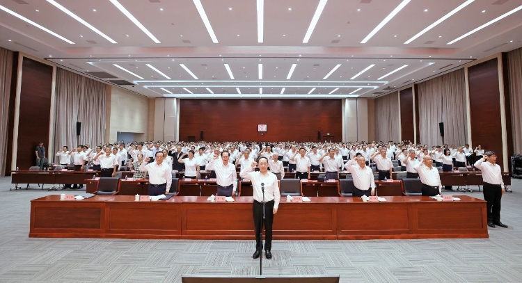会议在庄严的国歌声中拉开序幕,李乐成带领现场全体党员干部重温入党誓词。会上,4名党员代表作交流发言。车俊、李乐成为离退休党员代表颁发“光荣在党50年”纪念章,共有114名部直属机关老同志今年获此殊荣。