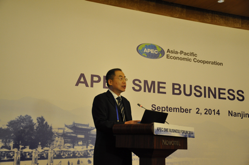 9月2日,2014年APEC中小企业工商论坛在南京召开。本次论坛是APEC第21次中小企业部长会议重要配套活动之一。中国工业和信息化部总工程师朱宏任和中华全国归国华侨联合会副主席李卓彬出席开幕式并致辞。来自APEC各成员经济体的工商界领袖、专家、学者等共200余名代表参加了论坛。