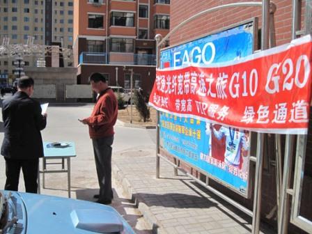 为贯彻落实《内蒙古“宽带中国2013专项行动”实施方案》,铁通内蒙古分公司加大城市老旧下去光纤网络改造力度,积极推进“光进铜退”工作,利用节假日在小区进行宣传。