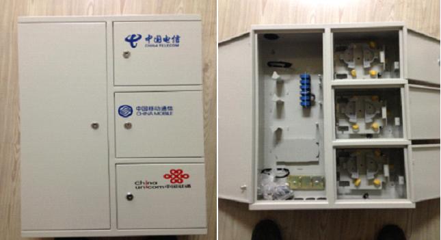 目前,各市地都按照管局部署,积极行动起来,结合实际制定了有力的工作措施,大力推进光纤到户建设。其中,青岛市通信行业坚持多措并举、示范先行,光纤到户建设工作成效显著。一是积极与当地政府部门沟通,以市政府办公厅名义出台了《关于推进青岛市光纤到户的意见》(青政办字[2013]37号),进一步明确了通信管理局、建委、房管等政府部门和开发建设、物业管理单位以及电信运营企业的职责分工;二是组织通信规划设计部门的专业技术人员,为开发建设单位提供光纤到户建设的政策咨询和技术服务,保障光纤到户通信设施的设计和施工符合国家标准;三是针对具体项目,多次组织相关企业与开发建设单位进行现场勘查和深入沟通,并联系设备生产厂家,统一规范标准,制作了用于住宅小区单元内安装的共用光纤交接箱(图1),供各驻地网项目采购使用;四是为便于共建项目的施工和后期的装机维护工作,组织各电信企业经过多次研讨,启用了第三方施工维护单位,并制定了建设和维护技术方案、费用分摊方案等。在驻地网项目共建共享的基础上,小区内基站和室内分布系统的共建共享工作也正在有序开展。目前,青岛市已有14个小区按照标准进行了设计和施工,其中5个小区已完成了住宅建设单位负责的小区内通信管道和用户管线全部建设工作。