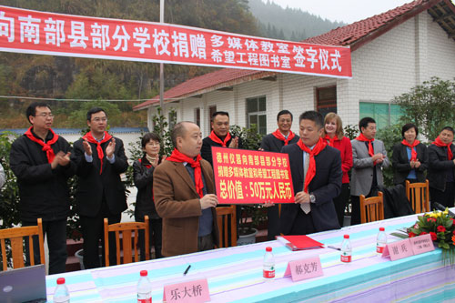 南部县教育局局长罗维代表部分学校接受价值50万元的捐赠并签字。德州仪器中国区总裁谢兵说,“对南部县中小学的捐赠是德州仪器支持四川及中国各地教育事业发展举措的一部分,TI期望每位学子都有一个良好的学习环境,与TI共同成长。作为在华开展业务的企业的一员,TI对能够参与支持中国教育事业的发展深感自豪。”此次捐赠活动共向中小学捐赠 30套“德仪多媒体教室”,并通过中国青少年发展基金会向20所小学捐赠“德仪希望工程图书室”。