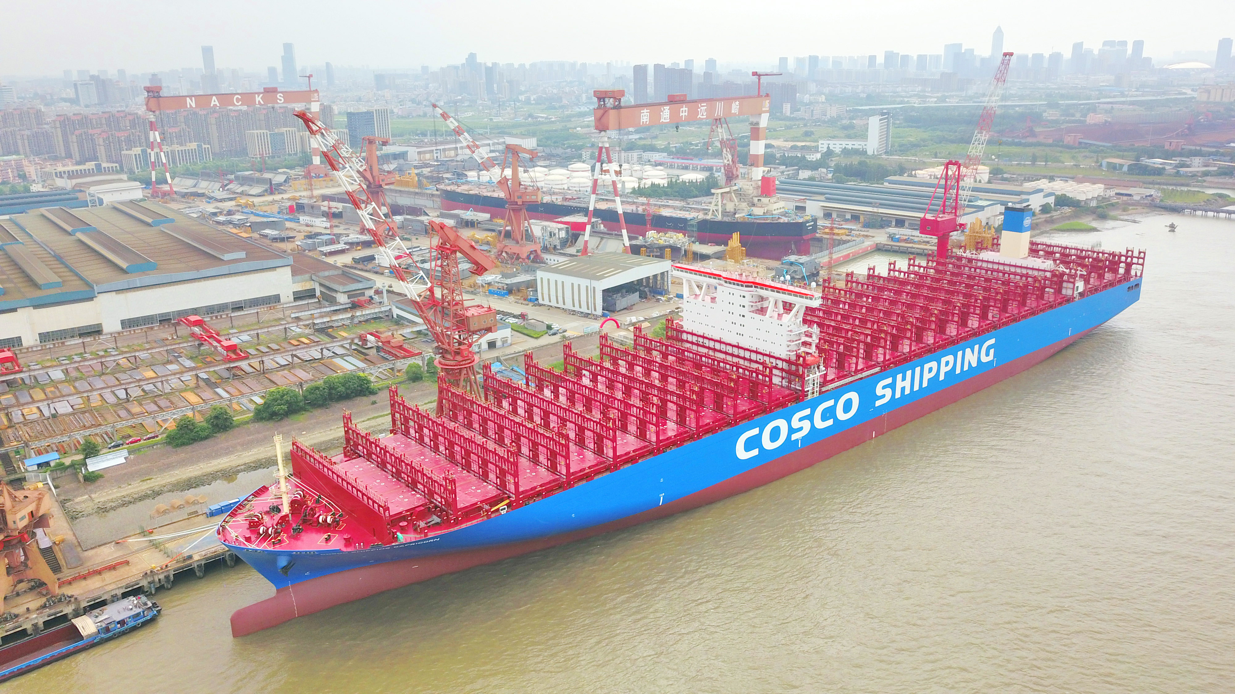 在这样的股权和管理权结构下,中远集团引领同业的生产经营、先进的管理团队、先进的企业文化以及市场、环境、客户等优势资源,与日本川崎重工百年船舶设计生产技术和先进管理经验相结合,使南通中远海运川崎先天就享有“站在巨人肩上”的优势。
