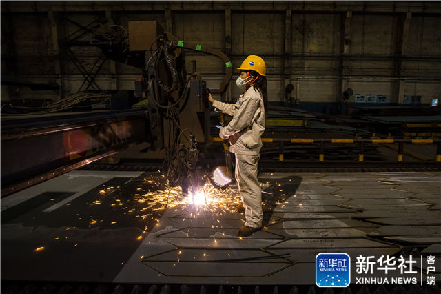 在沪东中华造船(集团)有限公司,工人在作业(7月5日摄)。新华社记者 沈伯韩 摄
