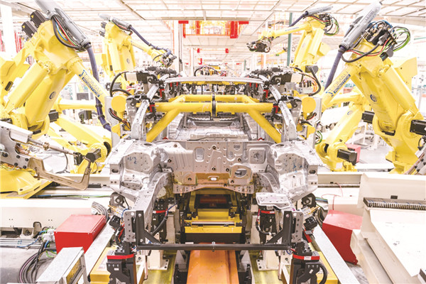 图为吉利控股集团的焊装生产线。