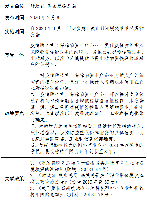 《关于支持新型冠状病毒感染的肺炎疫情防控有关税收政策的公告》(财政部 税务总局公告2020年第8号)政策要点