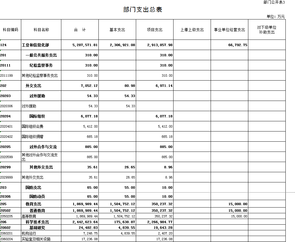 2.应用研究(款):指工业和信息化部用于社会公益研究和高技术研究等方面的支出。