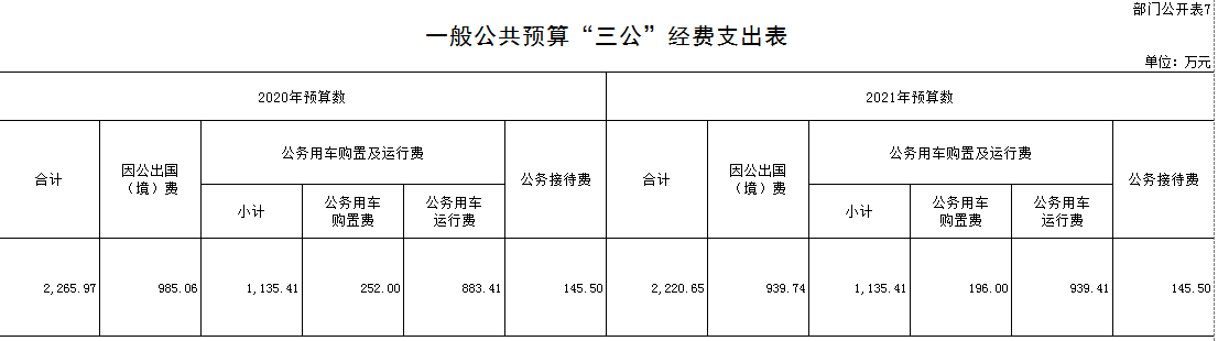 纳入中央财政预决算管理的“三公”经费,是指中央部门用财政拨款安排的因公出国(境)费、公务用车购置及运行费和公务接待费。其中因公出国(境)费反映单位公务出国(境)的国际旅费、国外城市交通费、住宿费、伙食费、培训费、公杂费等支出;公务用车购置及运行费反映单位公务用车车辆购置支出(含车辆购置税)、燃料费、维修费、过路过桥费、保险费、安全奖励费用等支出;公务接待费反映单位按规定开支的各类公务接待(含外宾接待)支出。