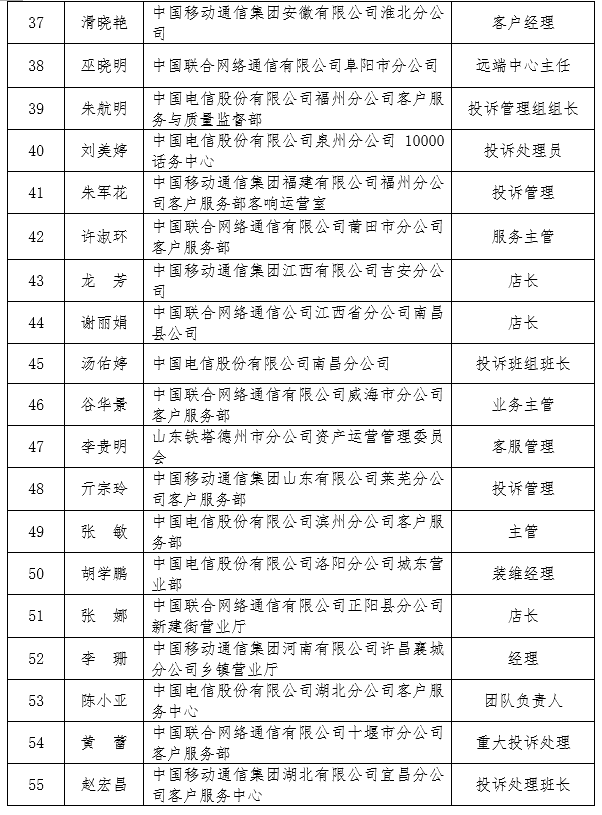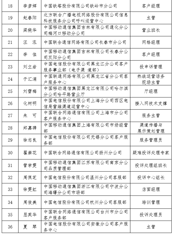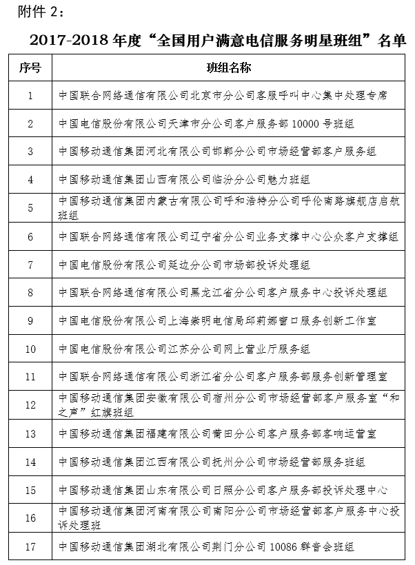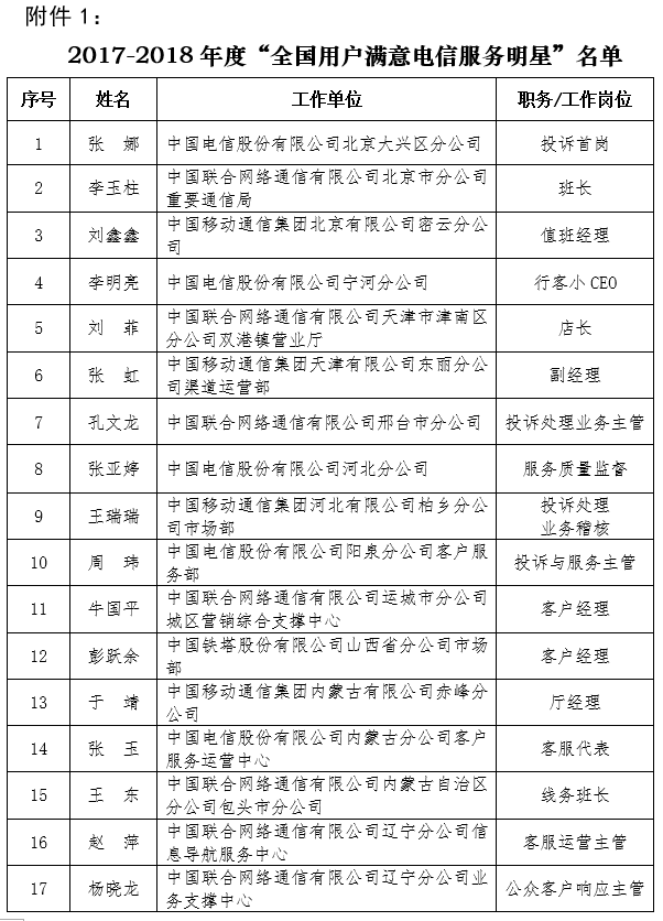 附件:1.2017-2018年度“全国用户满意电信服务明星”名单
