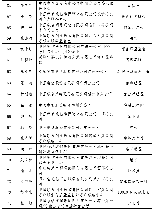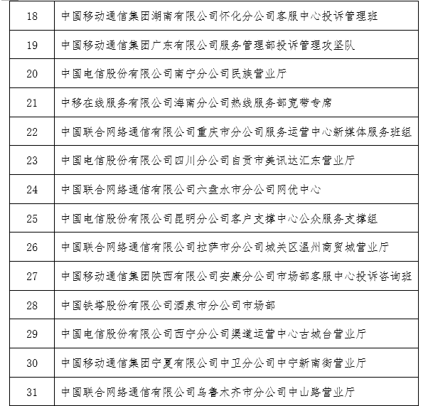 2018年,按照《关于开展2017-2018年度电信服务评比表彰活动的通知》(工信行建〔2018〕1号)相关工作要求,工业和信息化部行风建设领导小组在通信行业组织了“全国用户满意电信服务明星”和“全国用户满意电信服务明星班组”的评选工作。