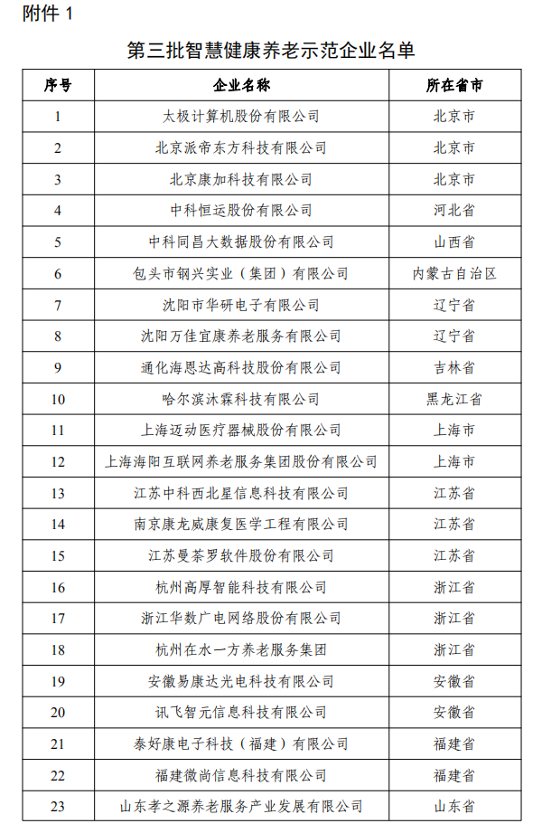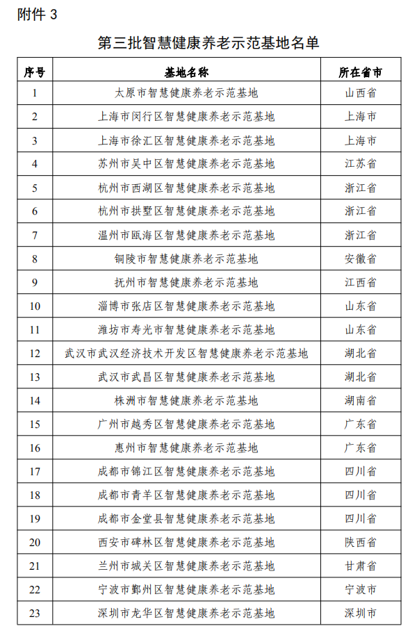 标 题:工业和信息化部 民政部 国家卫生健康委员会关于公布第三批智慧健康养老应用试点示范名单的通告