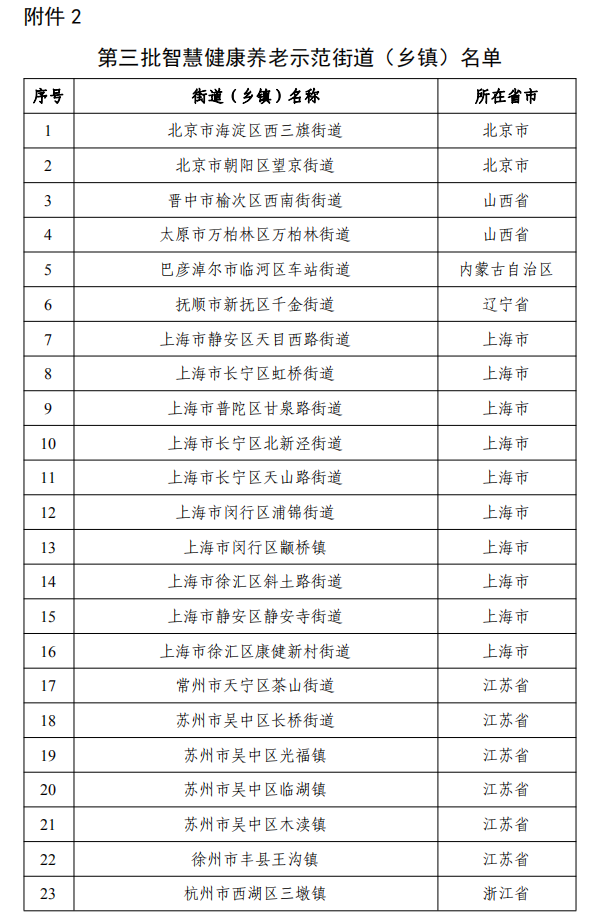 2.第三批智慧健康养老示范街道(乡镇)名单