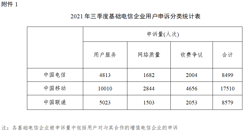 根据《中华人民共和国电信条例》相关规定,现将2021年第三季度电信服务有关情况通告如下: