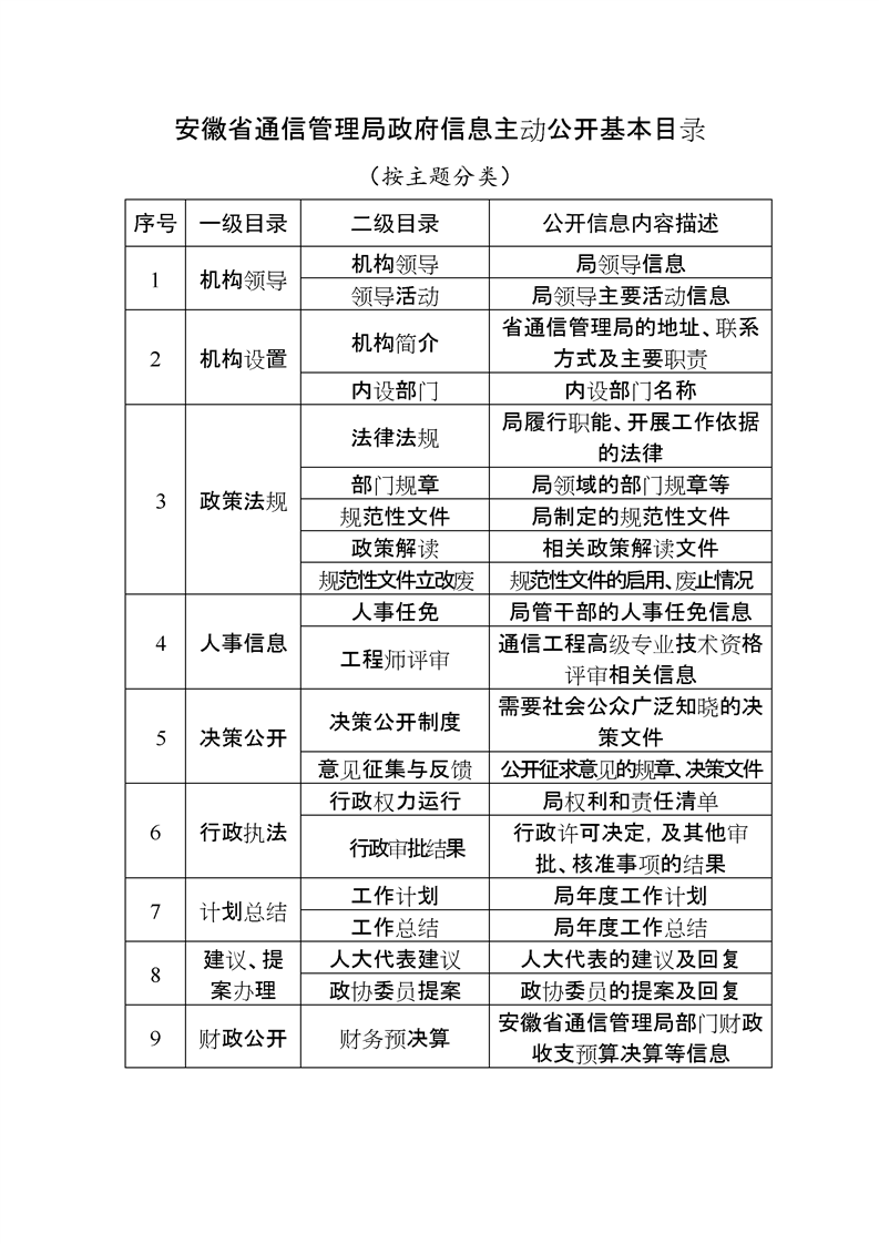 安徽省通信管理局政府信息主动公开基本目录.pdf
