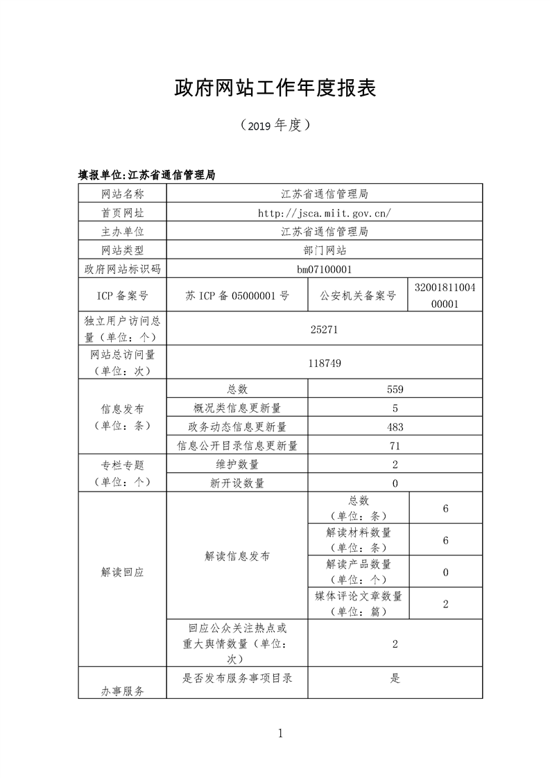 江苏省通信管理局网站工作2019年度报表